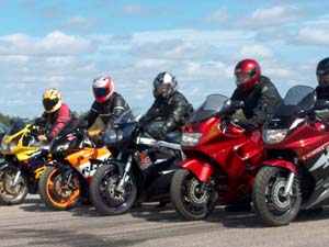 Osa testitilaisuuden moottoripyöräilijöistä...